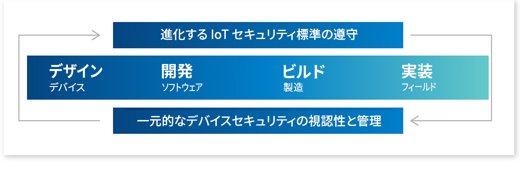 どのステップでも分析と更新を行います。脅威を継続的に監視することにより、潜在的なセキュリティインシデントを迅速に検出して対応できます。セキュアなソフトウェア更新を実装することで、最新の脅威に対してもデバイスは保護された状態で維持されます。また、ゼロタッチプロビジョニングにより、最小限の手動介入に抑え、デバイスは安全に設定されてアクティブ化されます。