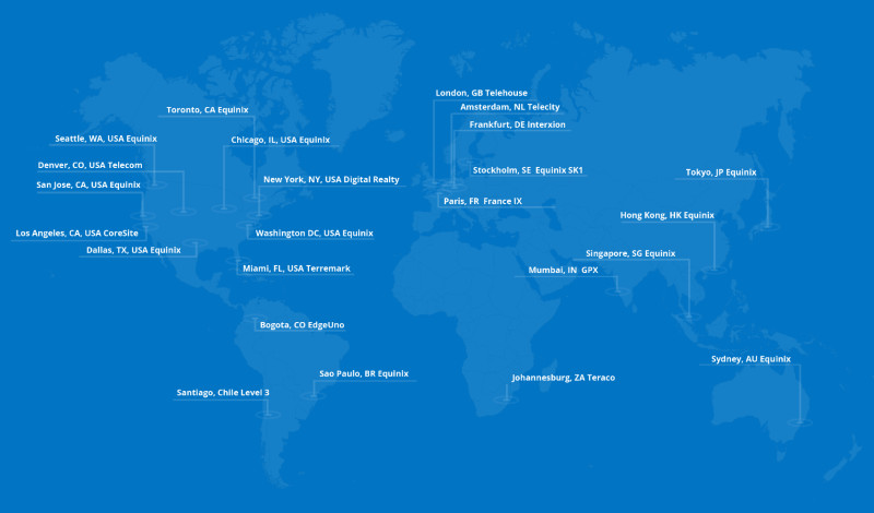 The global Domain Name System (DNS) nameserver network is a system of servers that work together to translate domain names into IP addresses. This massive network is spread globally and serves as the backbone of the internet by directing web traffic to its intended destination. DigiCert DNS Made Easy has a truly unique and well-connected network with over 24 strategically placed Points of Presence (PoPs) that create the ultimate network for its clients and end-users.