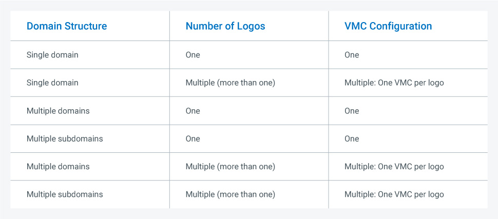 Every organization is unique in its email and domain structure. If your company has a single email domain and logo, one VMC may be all you need. If you have multiple email domains and a single logo, one VMC may still do the trick.