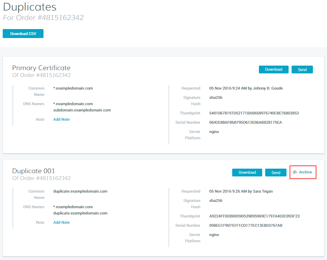 We added an easy way to see and access the Duplicate certificates under an Order.