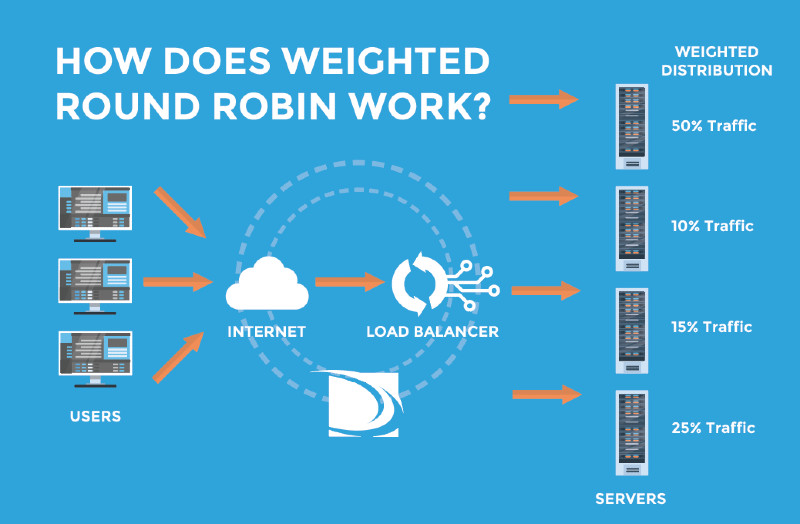 An advanced round robin load balancing configuration is Weighted Round Robin (Constellix only). This option allows you to distribute uneven amounts of traffic across your network, which gives you the unique ability to prioritize resources by capacity or responsiveness. You can also take advantage of Weighted Round Robin for A/B testing purposes and for timed rollouts, or rollouts you only want to be delivered to certain groups of users.
