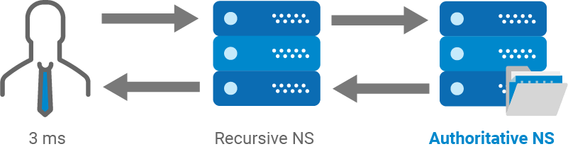 The recursive name servers are closest to end-users since they are usually a client’s ISP (Internet Service Provider). Recursive name servers will cache (store a copy) DNS information for a set period of time, which can skew the actual response times of authoritative name servers.