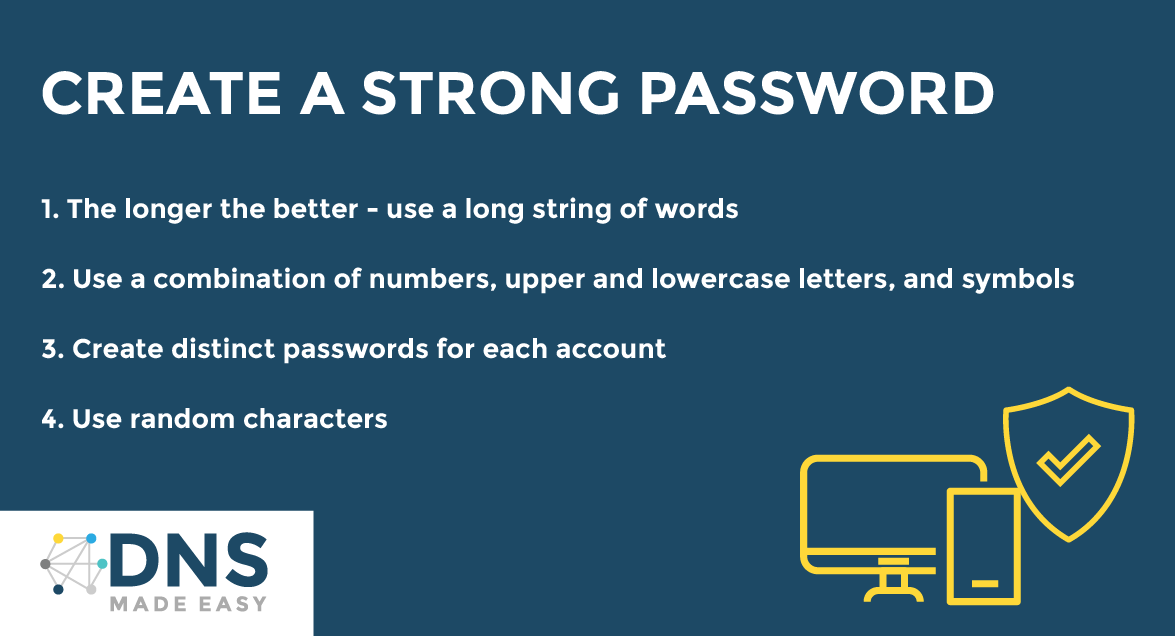 There are many recommendations to consider in order to create strong passwords. Here are some top suggestions: