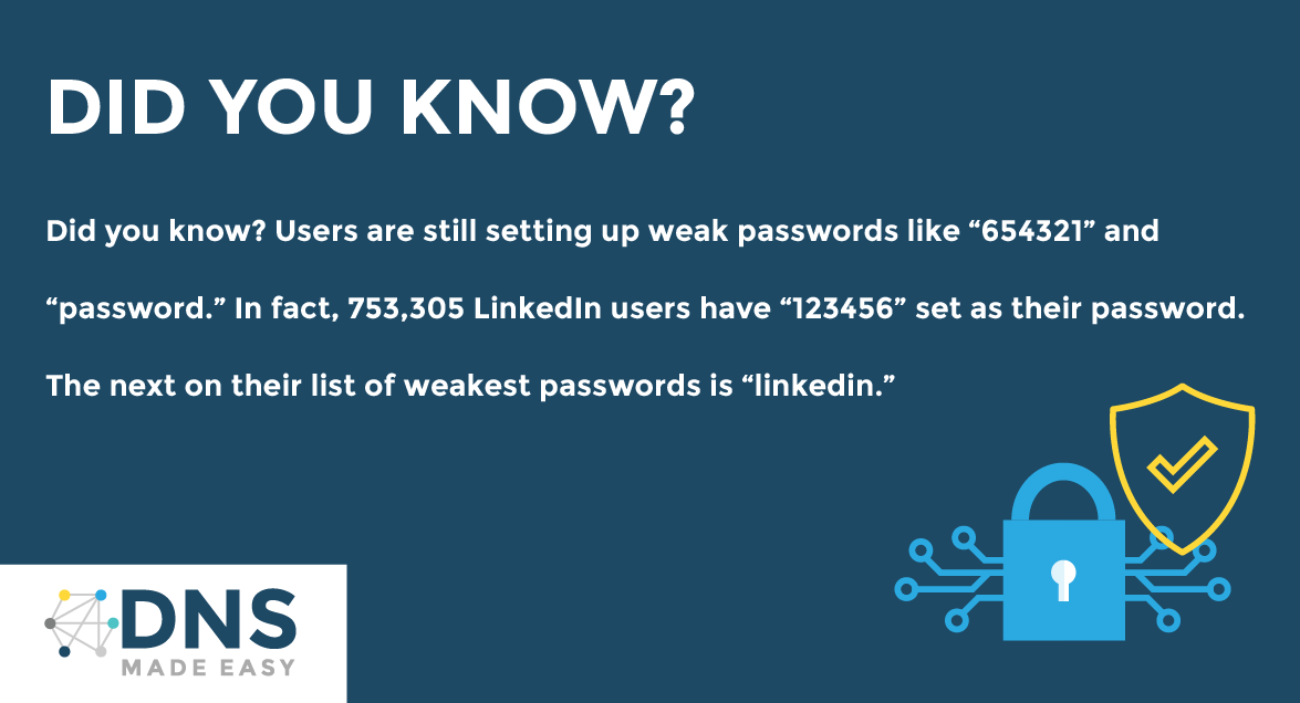 Did you know? Users are still setting up weak passwords like “654321” and “password.” In fact, 753,305 LinkedIn users have “123456” set as their password. The next on their list of weakest passwords is “linkedin.”