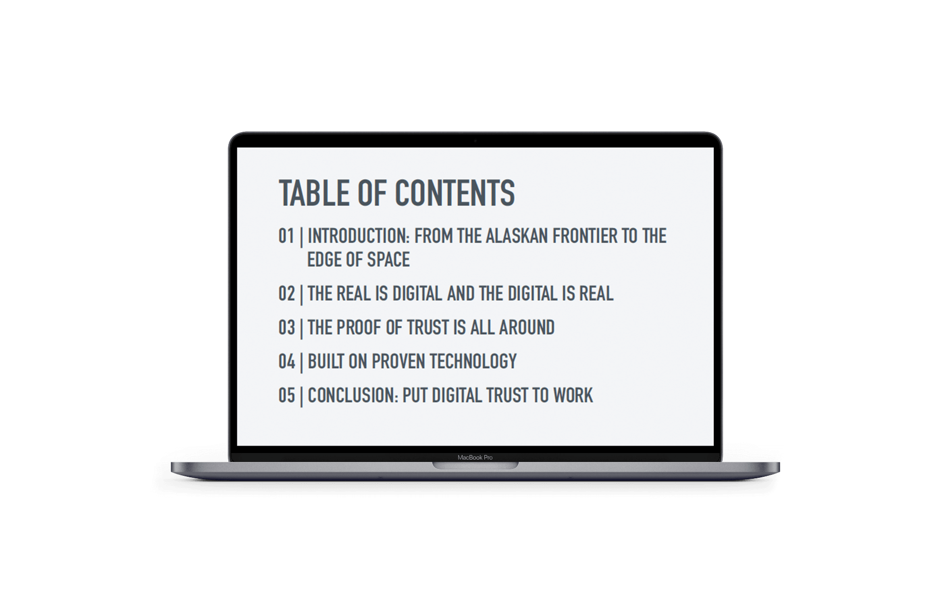 Download the DigiCert eBook, “Digital Trust for the Real World,” to learn why digital trust has become an operational imperative and how companies are embracing and extending trust to achieve real-world results—from the Alaskan frontier to the edge of space.