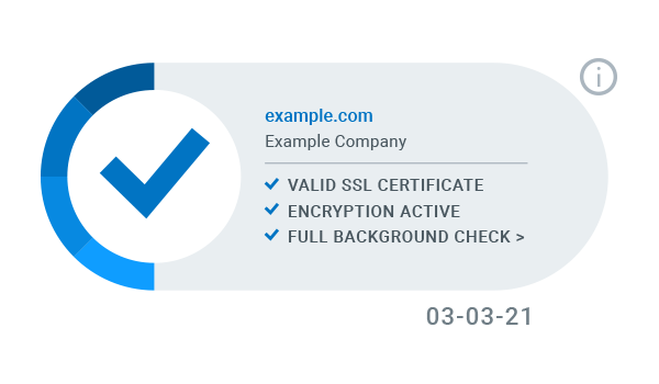 シンプルで Web に適したアニメーションがユーザーの目を引き、シールの偽造を難しくします。 1 回クリックするだけで、証明書の内容を細かく確認でき、サイトの詳細を確かめることができます。
