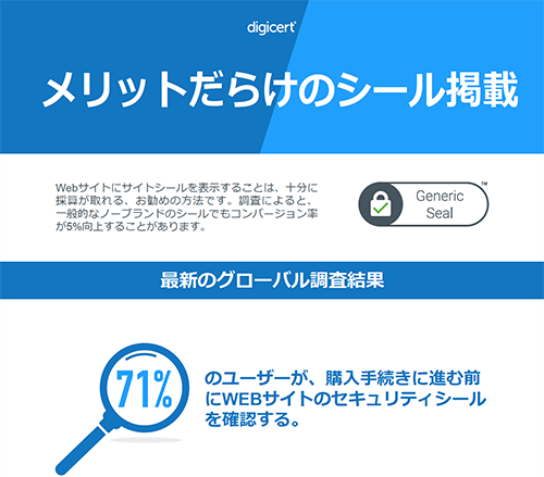ユーザーに馴染み深いシンボルマークを表示しておくことで、チェックアウトするお客様の信頼と安心は一瞬にして確実なものとなります。世界で最も信頼されている認証局にどうぞお任せください。