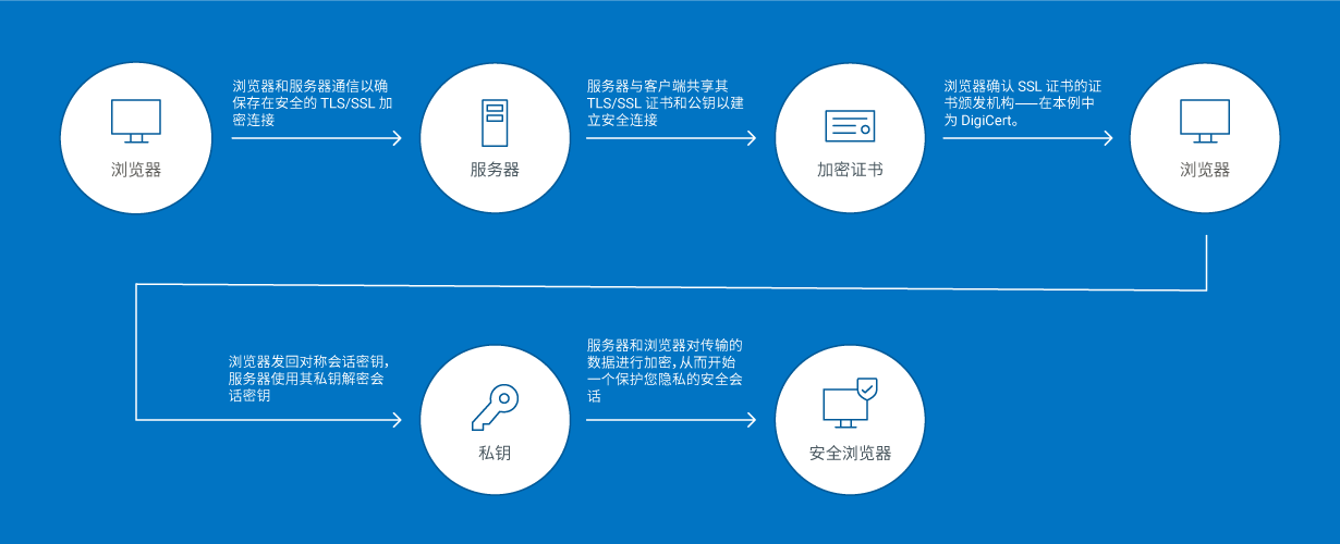 一个最终用户不可见的、被称为“TLS/SSL握手”的过程在您每次访问网站时近乎即时地在您的Web服务器和Web浏览器之间创建受保护的连接。受到TLS/SSL证书保护的网站将在浏览器地址栏中显示HTTPS和小挂锁图标。TLS/SSL证书用于在传输过程中保护最终用户的信息,并对网站的组织身份进行身份验证,以确保用户与合法的网站所有者进行交互。
