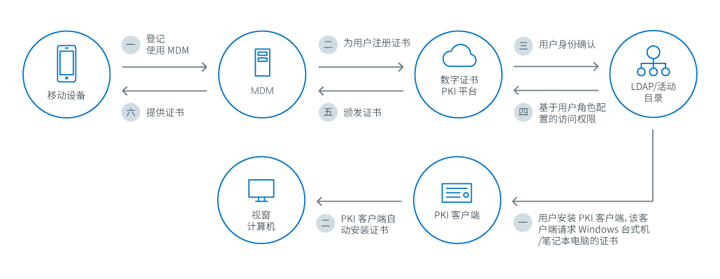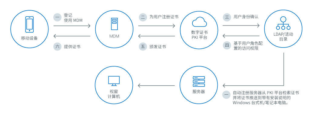 通过一次登录配置所有移动设备。控制对服务和应用程序的访问,实现自助服务激活的自动化,并促进电子邮件、VPN和Wi-Fi的网络访问。