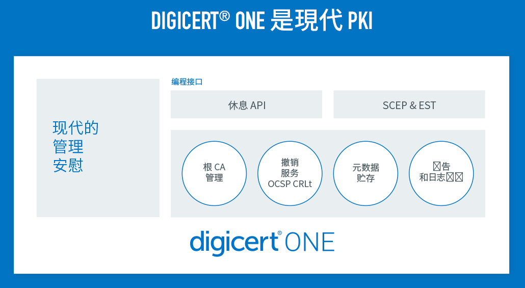 DigiCert ONE是在一个强大的平台中提供的一套现代化PKI管理器,旨在实现快速部署并采用满足您需求的配置。