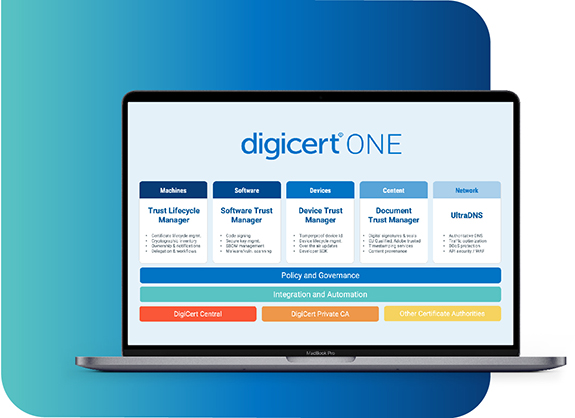 DigiCert ONE is more than just a platform. It’s a new way of thinking about how you secure and manage everything of value in your organization. From the individual website to the massive enterprise, DigiCert ONE makes security, validation, and identity powerful and easy. No matter the size or use, DigiCert ONE delivers control and simplicity for the highest level of assurance.