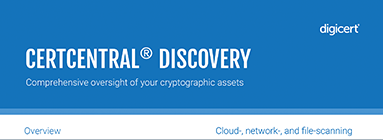 DigiCert® ONE is more than just a platform. It’s a new way of thinking about how you secure and manage everything of value in your organization. From the individual website to the massive enterprise, DigiCert ONE makes security, validation, and identity powerful and easy. No matter the size or use, DigiCert ONE delivers control and simplicity for the highest level of assurance.