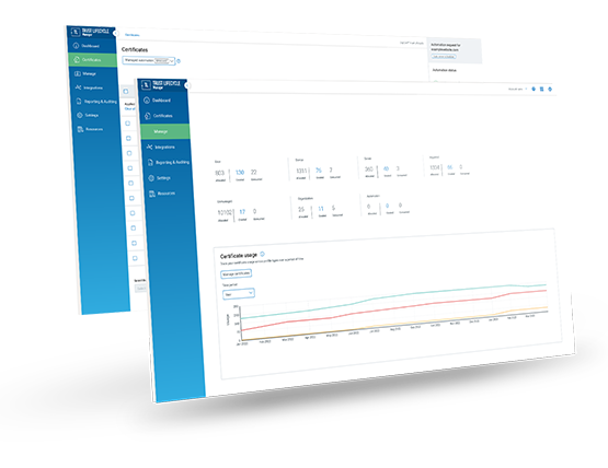 Para las empresas, el riesgo de sufrir fallos con los certificados y problemas relativos a las identidades y la autenticación es hoy más alto que nunca. Por eso hemos creado Trust Lifecycle Manager de DigiCert. Nuestra completa solución —compatible con cualquier autoridad de certificación— combina la gestión de certificados con los servicios de PKI para centralizar la visibilidad y el control y garantizar la seguridad de las identidades y de los procesos de autenticación. Todo lo relativo a la PKI, reunido en un solo lugar.