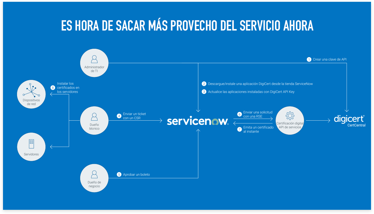 La mayoría de las grandes empresas utilizan ServiceNow para gestionar activos y proyectos informáticos, pero para gestionar los certificados TLS/SSL siempre se había necesitado una compleja combinación de herramientas y tareas manuales. Y esto no solo ralentiza todo, sino que además aumenta el riesgo de error humano.