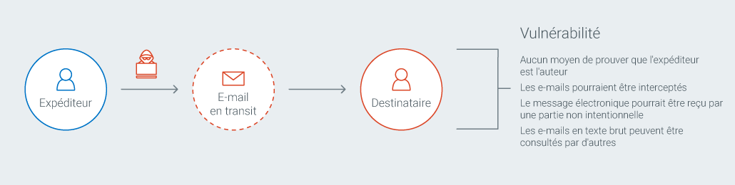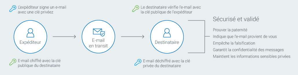 Dans de nombreuses entreprises, la messagerie représente le maillon faible de la chaîne de sécurité. Comme celles des sites web et des transactions bancaires, les données des e-mails doivent être protégées lorsqu'elles sont en transit. À cet égard, les certificats PKI offrent une solution éprouvée d'authentification et de chiffrement, capable à la fois de sécuriser le contenu du message et d'y intégrer l'identité de l'expéditeur.