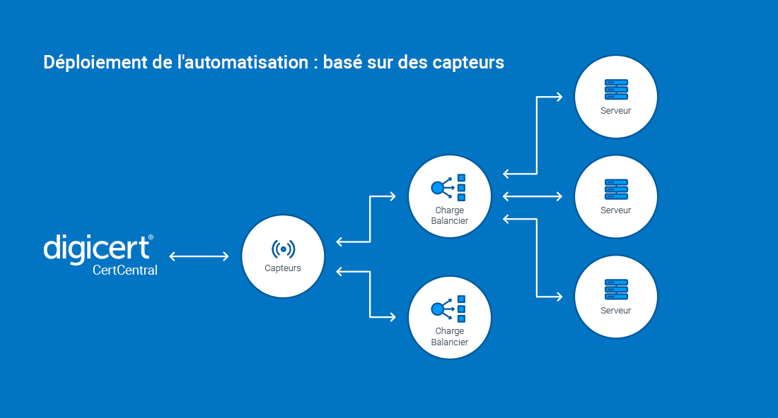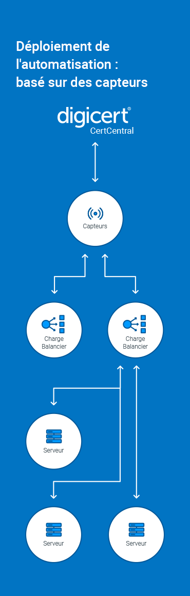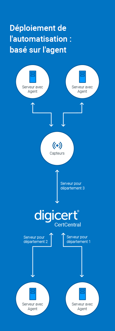 DigiCert Automation Manager automatise l’installation et le renouvellement des certificats OV et EV privés et publics, tout en réduisant le risque d’ouverture de pare-feu vers Internet: