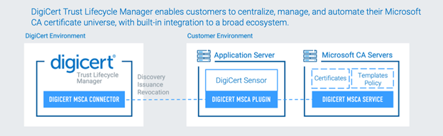 Figura 1: Come funziona Trust Lifecycle Manager con i server Microsoft CA