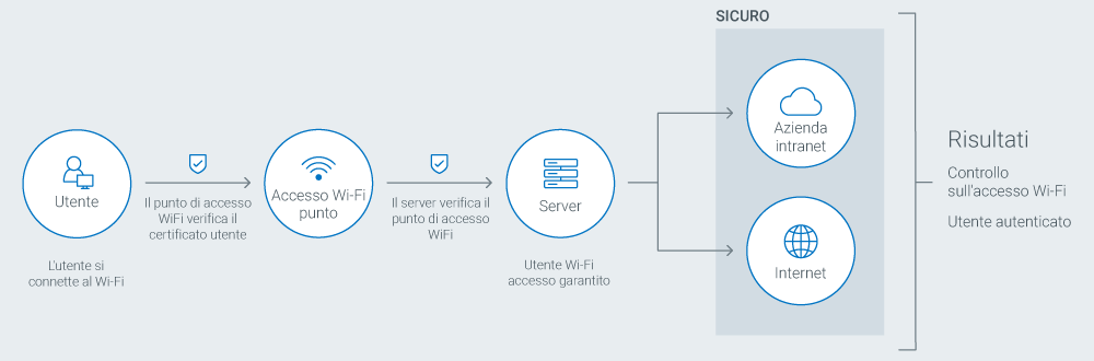 Con DigiCert® Trust Lifecycle Manager per la tua azienda proteggere gli accessi alla rete diventa facile. Una distribuzione semplificata e automatizzata dei certificati facilita la gestione, per te e per gli utenti finali.