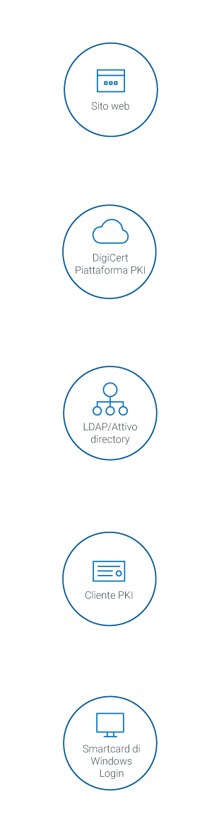 L'accesso con username e password lascia scoperte le vulnerabilità della tua rete. DigiCert PKI Platform gestisce l'accesso tramite smart card e rafforza la tua sicurezza. Inoltre è portatile e offre agli utenti l'autenticazione del fattore di forma. Infine, è facile da gestire perché usa la stessa piattaforma che hai già implementato per i certificati.
