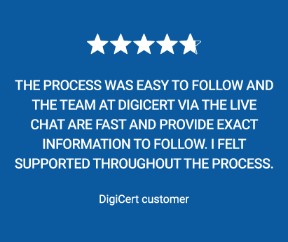 "La procedura è stata semplice e il team DigiCert, tramite la live chat, è stato veloce e mi ha fornito indicazioni precise da seguire. Ho avuto un supporto costante durante tutta la procedura".