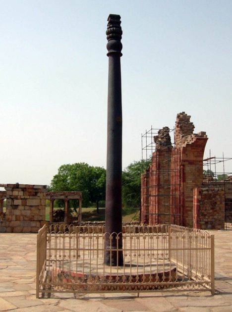 インドのデリー郊外にある全長 7 メートルの柱、アショーカの尖塔は、今から 1600 年も前に建造されたもので、素材には錆びない鉄が使われています。鉄が 98%で、残りの 2%は鉛、真鍮、ベルメタル(銅とスズ)、リンなどで構成されていますが、その精錬に使われたのは(現代の石灰石高炉ではなく)木造高炉でした。水や空気と接触すれば第一相では錆びますが(酸化第一鉄 FE-O)、金属と第一相との化学反応でミサワイトが生成されて酸化第一鉄の水酸化物(FeOOH)になり、それが「自己防衛の保護」となる受動層を形成します。
