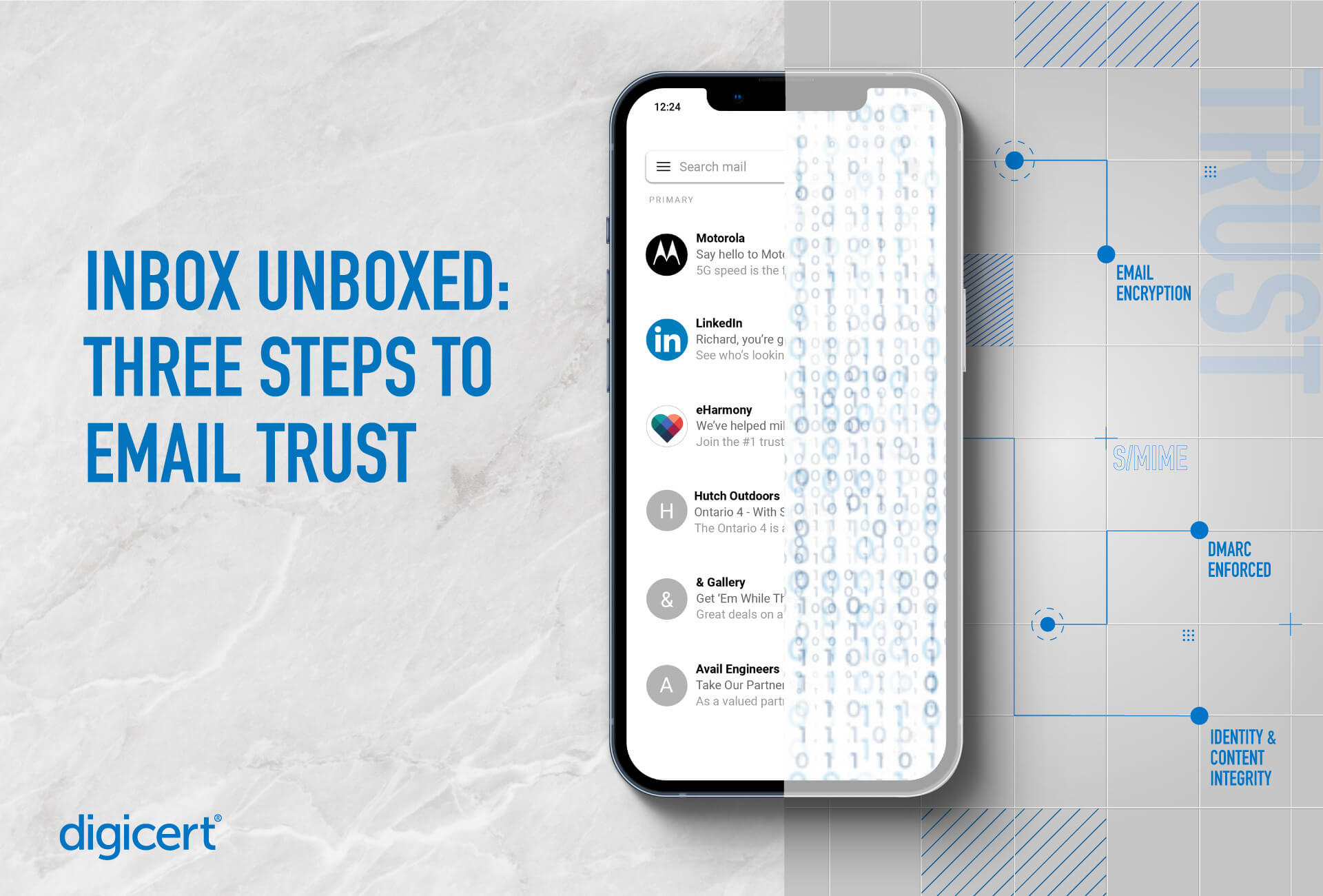 こうした状況の変化から、ある疑問が生まれます。メールの受信者が送信者の身元とメール内容の完全性を確信するにはどうしたらよいかということです。デジタルトラスト戦略が綿密であれば、メールコミュニケーションにこの重要なセキュリティ層を追加して、メール受信者が信頼できるコミュニケーションと疑わしいコミュニケーションを容易に区別できるようになります。