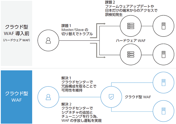 アピリッツ 執行役員データイノベーション部長の 西脇氏は、「WAF がエンドユーザの前面に設置され るため、WAF が停止するとサイト自体が停止にな ります。WAF のファームウェアアップデートだけでも手順書作成からリハーサルを事前に実施し、実 際のアップデート作業は深夜早朝帯のメンテナンス 時間で実施する必要がありました。そこまでしても、正常なアップデートができないケースが多々あった ために、その度に原因調査に時間やリソースを割かれてしまい、非常にWAF運用の負荷が高かったです。そこで “手放し運転” ができるWAF サービス への切り替えを検討せざるを得なかったのです」と話します。