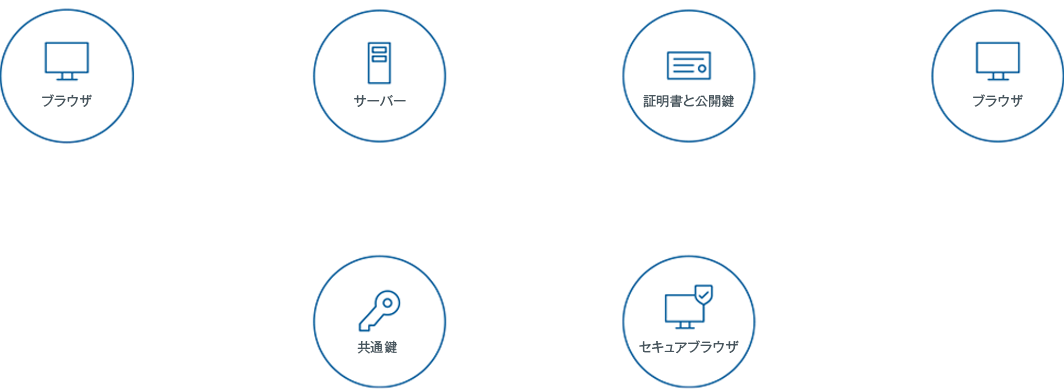 エンドユーザーには見えませんが、「TLS/SSL ハンドシェイク」と呼ばれるプロセスによって、Web サイトへのアクセスがあるたびに、Web サーバーと Web ブラウザの間で、保護された接続がほぼ瞬時に形成されます。TLS/SSL 証明書で保護されている Web サイトは、URL に https が付き、ブラウザのアドレスバーに小さな鍵(南京錠)アイコンが表示されます。TLS/SSL 証明書は、転送中のエンドユーザー情報を保護するとともに、Web サイトの組織のアイデンティティを認証して、正規の Web サイト所有者と通信していることを保証する目的で使用されます。