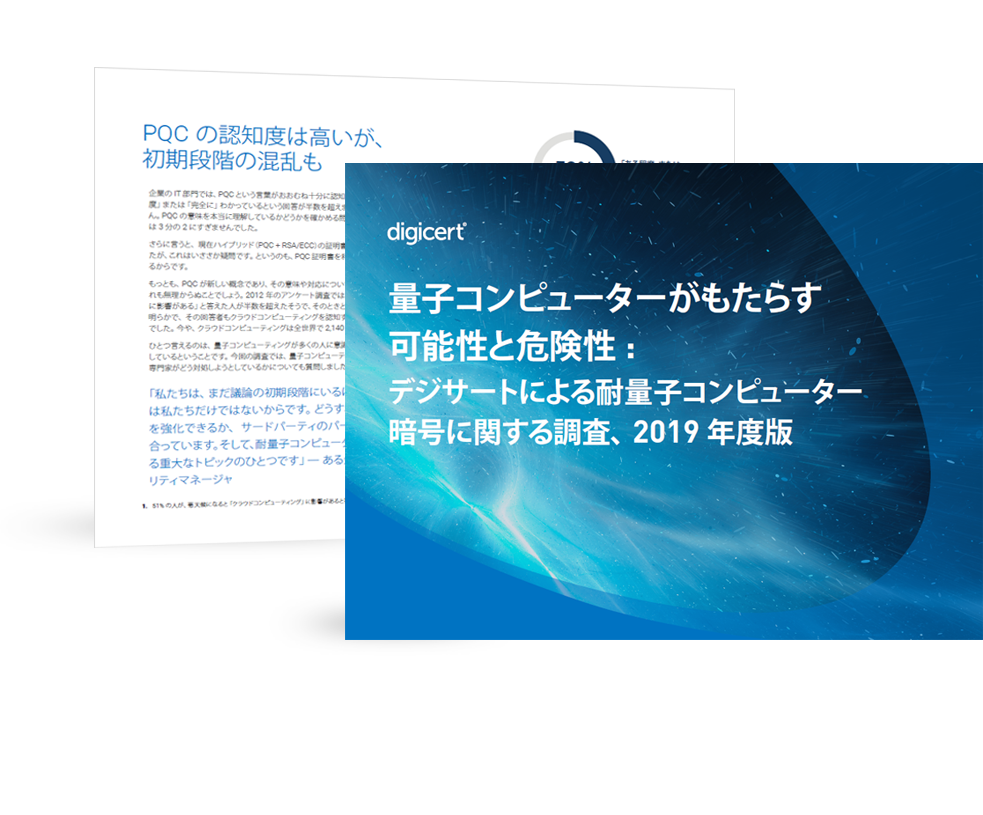 デジサートは、NIST の耐量子コンピューター暗号プロジェクトをはじめ、いくつかの PQC 構想で主要な役割を果たしています。組織が私たちの研究開発を利用できるように、またプロセスをスピードアップできるように、デジサートは PQC ツールキットを開発し、ユーザーが RSA/PQC ハイブリッド証明書を試せるようにしました。(2020年10月1日現在:英語版でのご提供となり、申し込み後の対応も英語となります。)