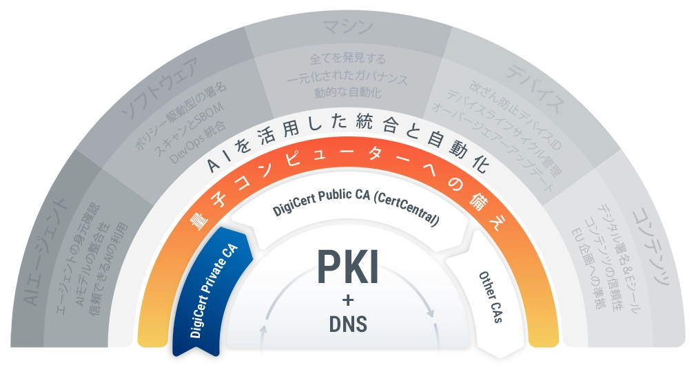 内部 PKI。プライベートPKI。エンタープライズPKI。DigiCertは、どのような名称であれ、あらゆるユースケースに対応するワールドクラスのサポートにより、安全でスケーラブルなPKIインフラストラクチャを提供します。