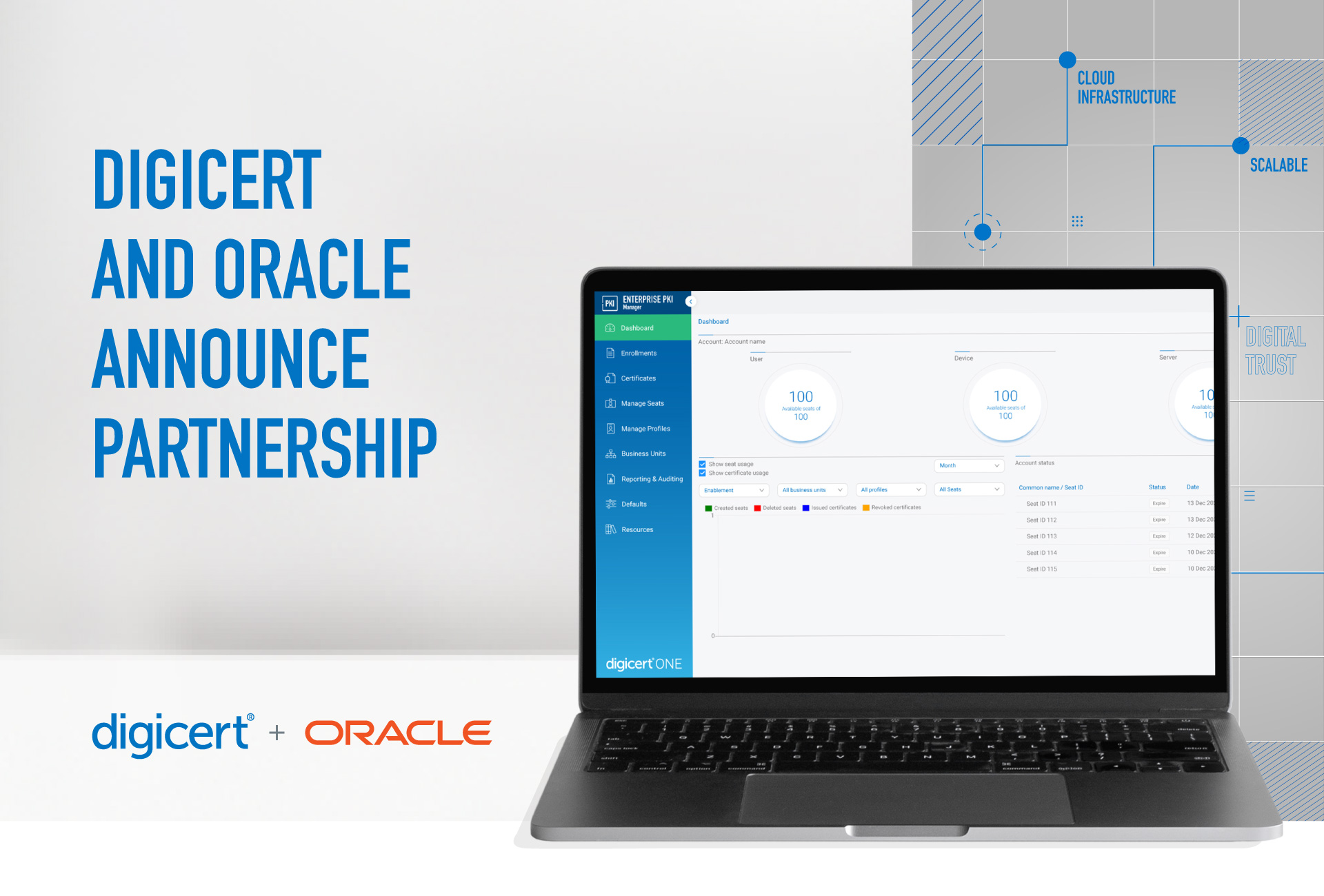 2023년 5월 24일, 서울 - 디지털 신뢰(digital trust) 분야의 글로벌 선도기업이자 오라클 파트너 네트워크(Oracle PartnerNetwork, OPN) 회원사인 디지서트(DigiCert)는 오라클(Oracle)과 오라클 클라우드 인프라스트럭처(Oracle Cloud Infrastructure, OCI)에서 ‘디지서트 원(DigiCert® ONE™)’을 제공하기 위한 파트너십을 체결했다고 발표했다.