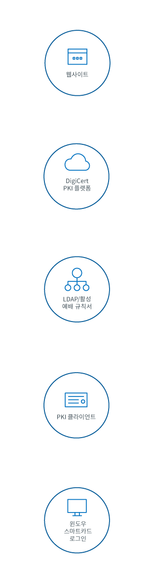 DigiCert® 엔터프라이즈 PKI 관리자를 사용하면 현대적이고 유연한 클라우드 기반 아키텍처에서 물리적 토큰을 개수에 관계없이 쉽게 보호하고 인증할 수 있습니다.