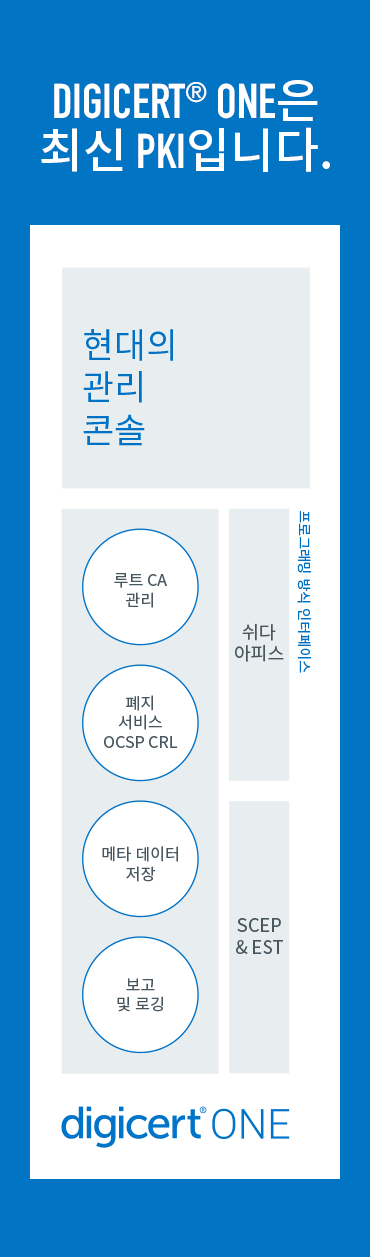 공개 및 비공개 키 인프라는 전송 중 데이터, 장치와 사용자 인증, 이메일과 문서부터 애플리케이션까지 모든 것의 코드 무결성 확보에서 수십 년간 그 유효성이 입증되었습니다. 이제 최신 DigiCert ONE 내에서, PKI는 클라우드뿐 아니라 5G 수요에도 알맞은 고도의 가용성, 거대한 확장성, 극도의 유연성을 갖추게 되었습니다.