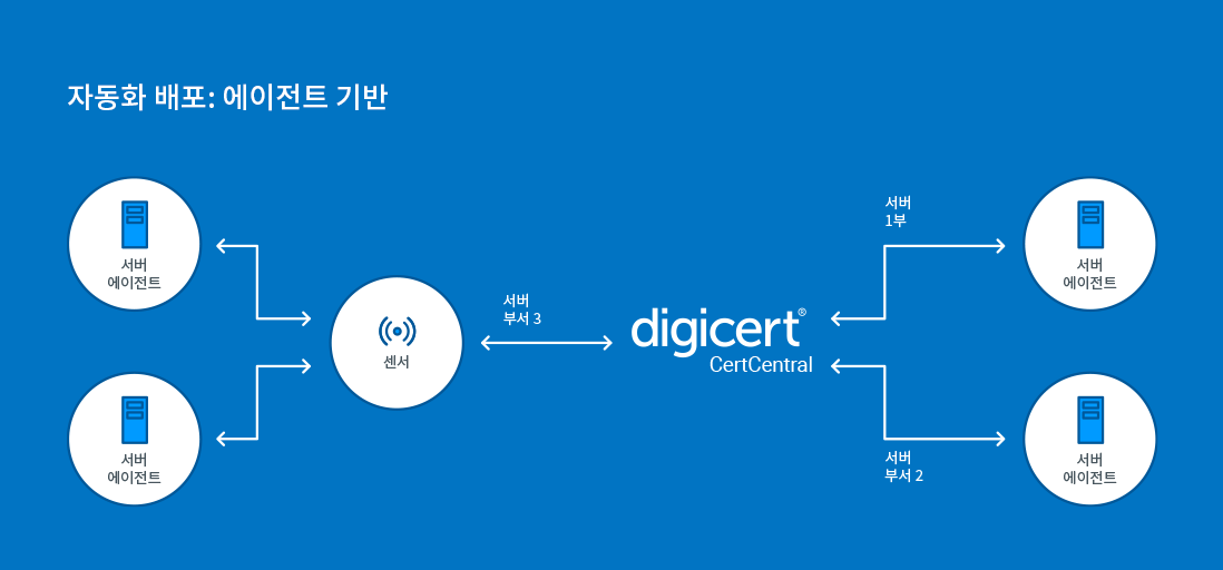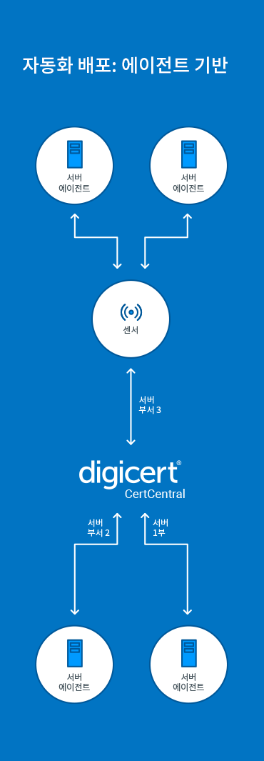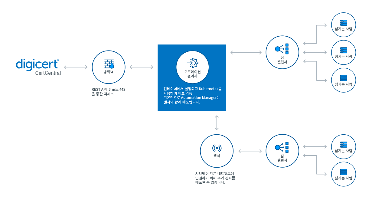 DigiCert Automation Manager는 비공개 및 공개 OV 및 EV 인증서의 설치 및 갱신을 자동화하는 동시에 인터넷에 열린 방화벽의 위험을 완화합니다.