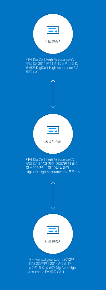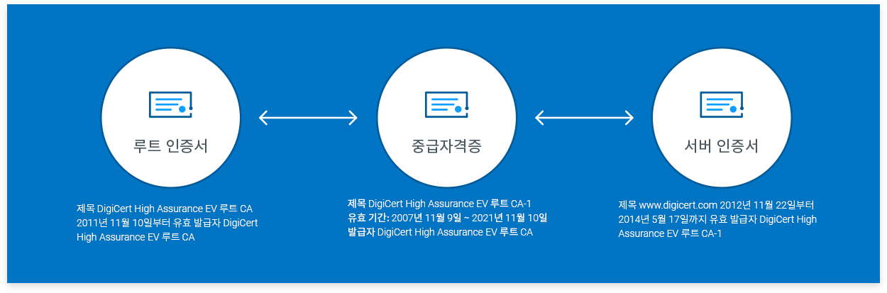 SSL 인증서의 가장 중요한 부분은 DigiCert처럼 신뢰할 수 있는 인증 기관이 디지털 방식으로 서명하는 것입니다. 인증서는 누구나 만들 수 있지만 브라우저는 공인 인증 기관 목록에 포함된 조직에서 발급한 인증서만을 신뢰합니다. 브라우저는 사전 설치된 공인 인증 기관 목록(Trusted Root CA store로 알려짐)이 포함되어 제공됩니다. Trusted Root CA store에 추가되어 인증 기관이 되려면 브라우저에서 지정한 보안 및 인증 표준을 준수하고 그에 대한 감사를 받아야 합니다.