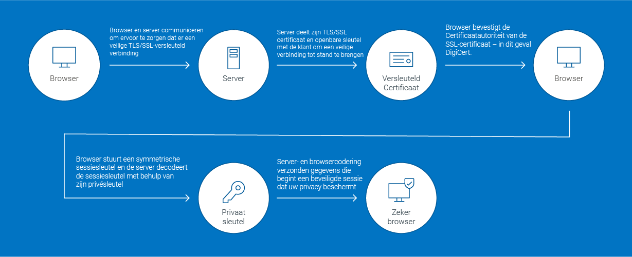 Onzichtbaar voor u als eindgebruiker wordt, iedere keer dat u een website bezoekt, via een zogenoemde 'TLS/SSL Handshake' vrijwel onmiddellijk een beveiligde verbinding tussen de webserver en webbrowser tot stand gebracht. Websites beveiligd met een TLS/SSL-certificaat zijn herkenbaar aan de vermelding HTTPS en het kleine hangslotpictogram in de adresbalk van de browser. TLS/SSL-certificaten worden gebruikt om de gegevens van eindgebruikers tijdens de overdracht te beschermen, én om de identiteit van de organisatie achter de website te verifiëren. Zo weten gebruikers zeker dat ze met legitieme website-eigenaren communiceren.