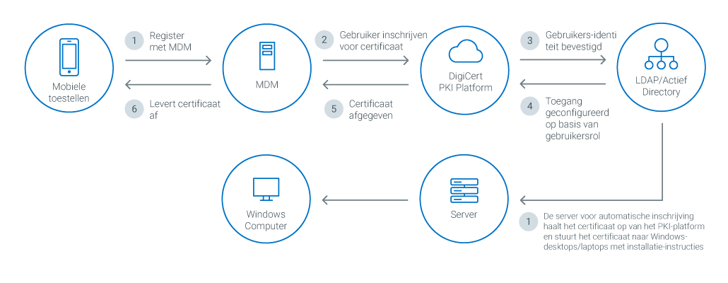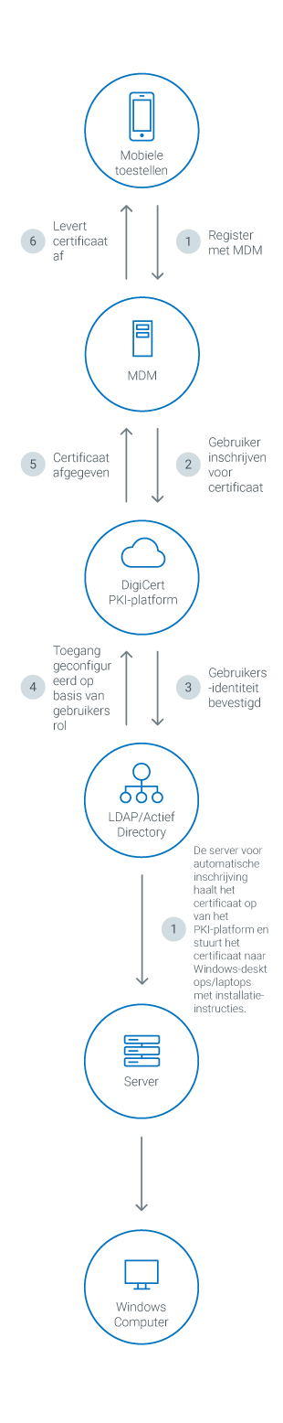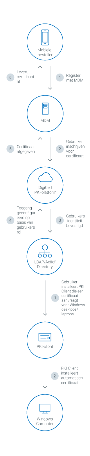 DigiCert Trust Lifecycle Manager beschermt uw gegevens, e-mail en applicaties, en geeft u de volledige controle over het beheer van uw gebruikers en mobiele apparaten (UEM/MDM), vanaf één locatie. Wat u ook implementeert en ongeacht de apparaten die uw medewerkers inbrengen: PKI zorgt voor betrouwbare versleuteling en identiteit.