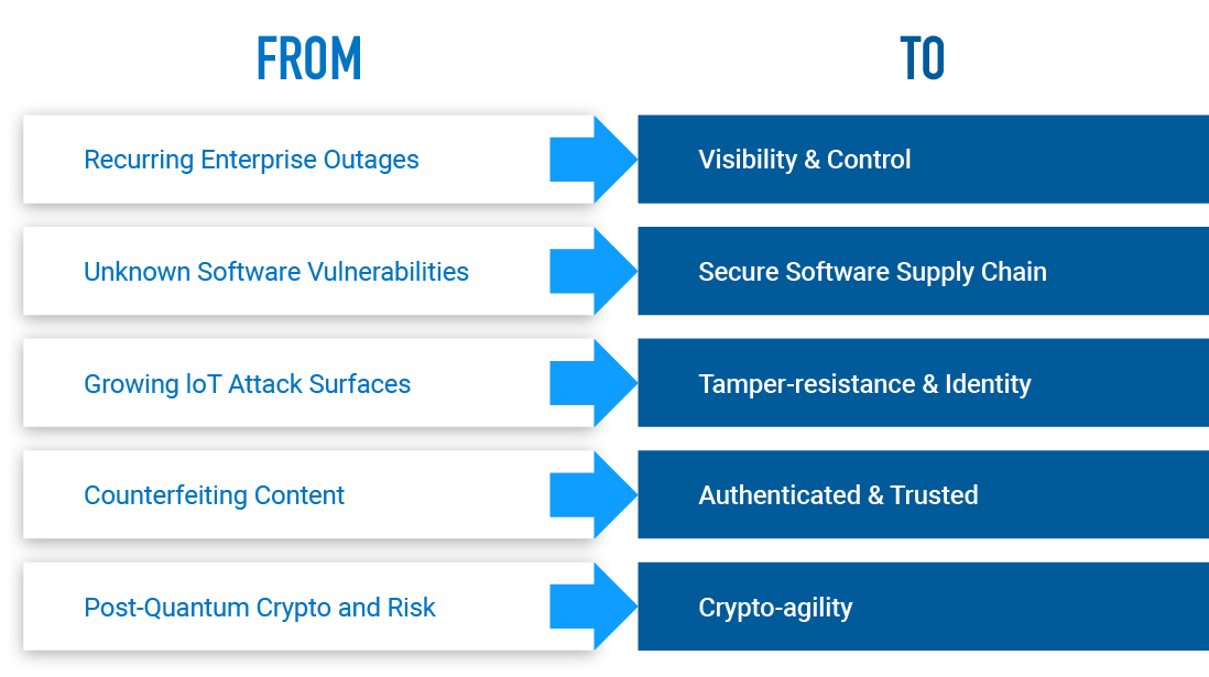 Our hyperconnected world brings material gains in convenience, productivity, and innovation. However, it also increases risk, complexity, and attack surfaces that can be exploited by bad actors. With digital services now irrevocably tied to real world outcomes, leading organizations around the world are investing in digital trust to reduce the risk of business disruption, secure attack surfaces, increase crypto-agility, and drive digital innovation.