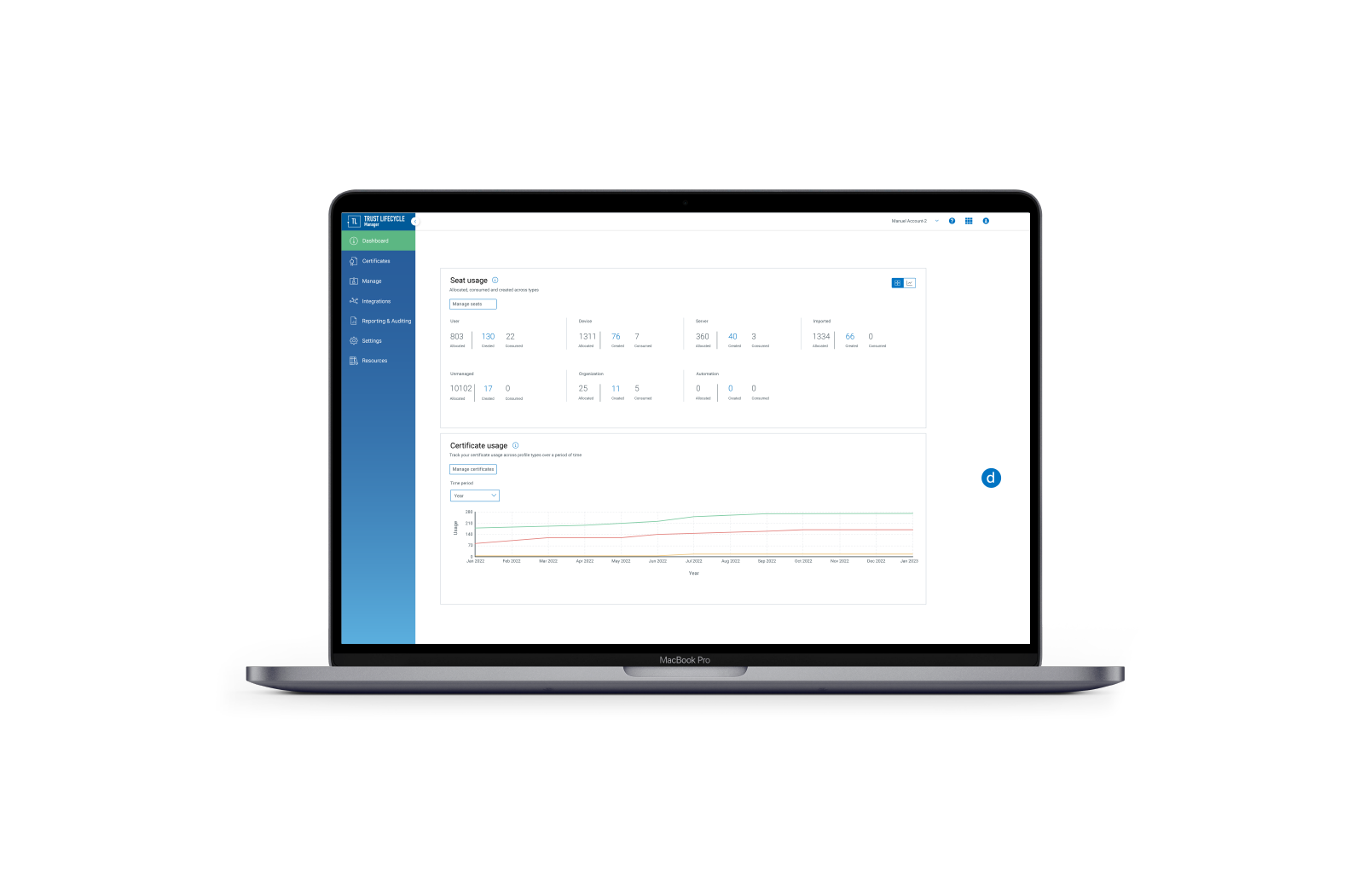 Flexibility of use makes mobile devices a benefit. Building security into your mobile environment requires an equally flexible encryption and identity management platform. With DigiCert® Trust Lifecycle Manager, you can control and administer all your mobile device certificates from one place.