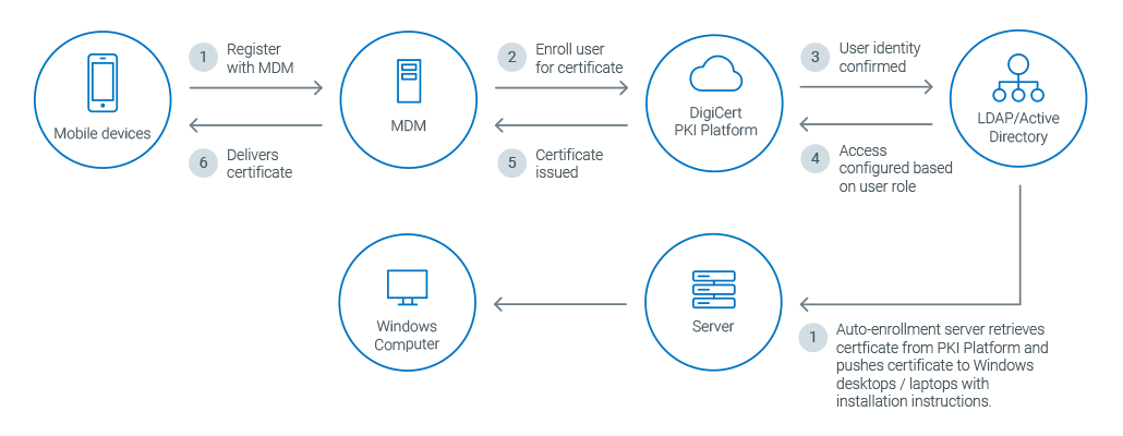 Issue and manage certificates for all devices—enterprise or BYOD. DigiCert Trust Lifecycle Manager supports and integrates with the UEM/MDM platforms you use.