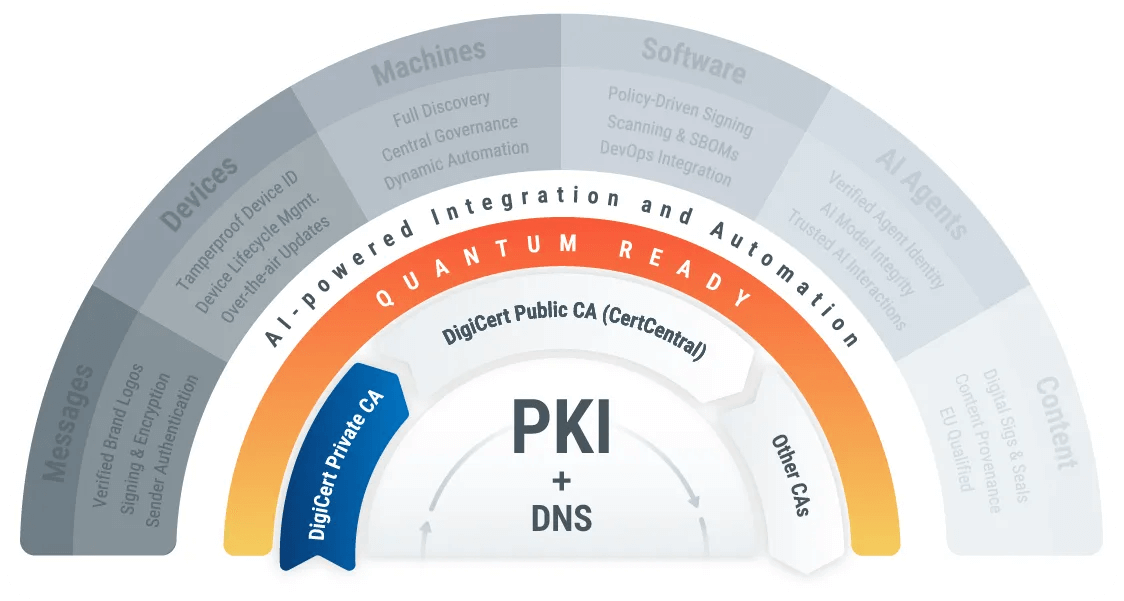 DigiCert’s deep knowledge of PKI, developed over 25 years of experience, ensures compliant, tested, and secure operations, enabling customers to avoid errors in CA configuration and management.