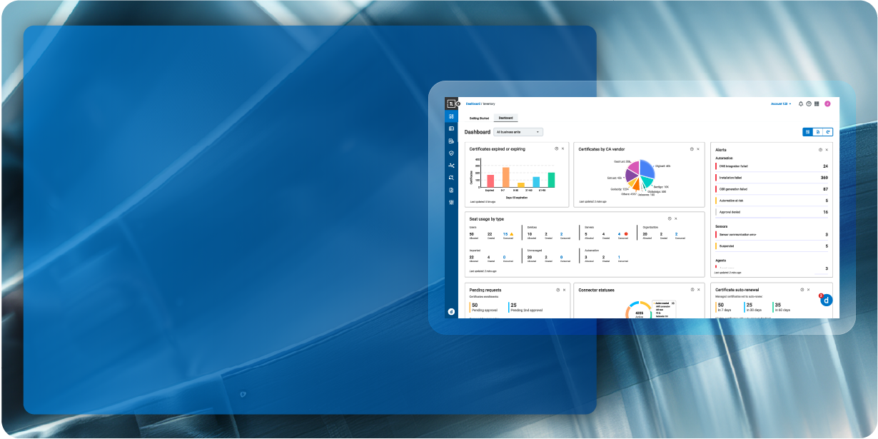 Legacy and disjointed internal Certificate Authorities—often ungoverned and unmanaged— lead to security risks, compliance gaps, and operational inefficiencies. As businesses expand to cloud, IoT, and DevOps, homegrown or aging CA technologies struggle to scale, driving up costs and complexity, without providing management and full visibility over all private PKIs.