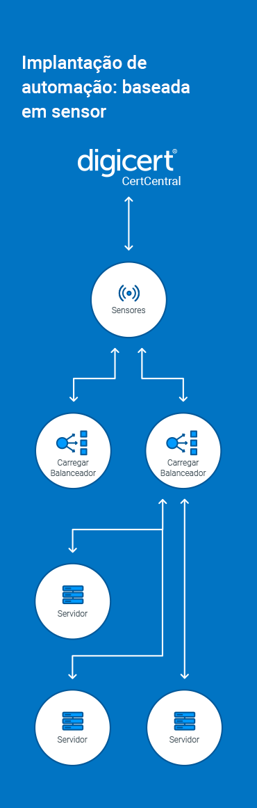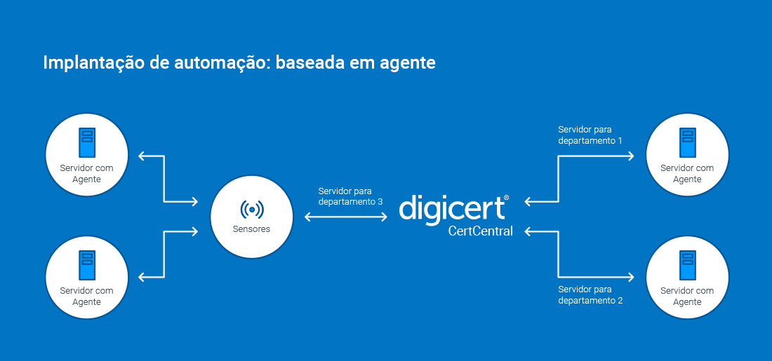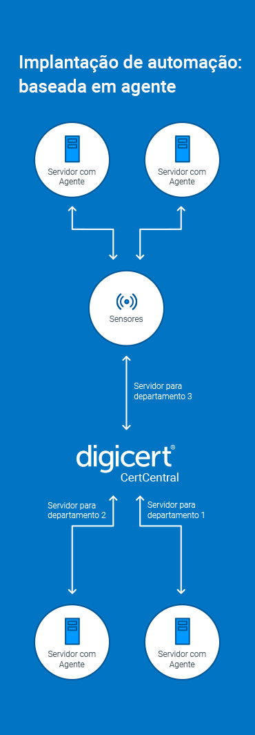 O DigiCert Automation Manager automatiza a instalação e renovação de certificados OV e EV privados e públicos, atenuando ao mesmo tempo o risco de abertura de firewalls para a Internet: