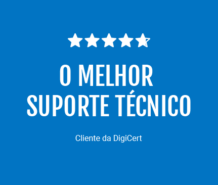 Um dos valores essenciais da DigiCert é a “dedicação absoluta ao cliente” — o que se reflete no Net Promoter Score (NPS) que recebemos de clientes verificados. A escala da pontuação vai de -100 a 100, onde o resultado 50 é visto por todos como “excepcional”.