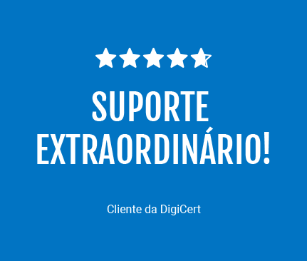 “Foi uma das experiências com suporte ao cliente mais incríveis que já tive! Meu problema foi identificado e resolvido muito mais rápido do que eu esperava! Muito obrigado, DigiCert!”
