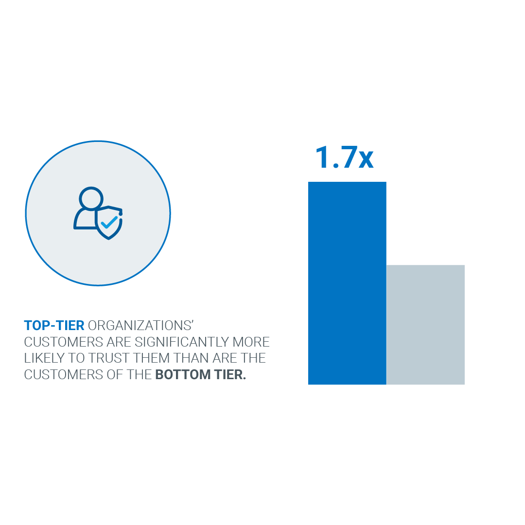 There are a variety of striking differences between the top tier and bottom tier that are driving these big differences in digital trust outcomes: