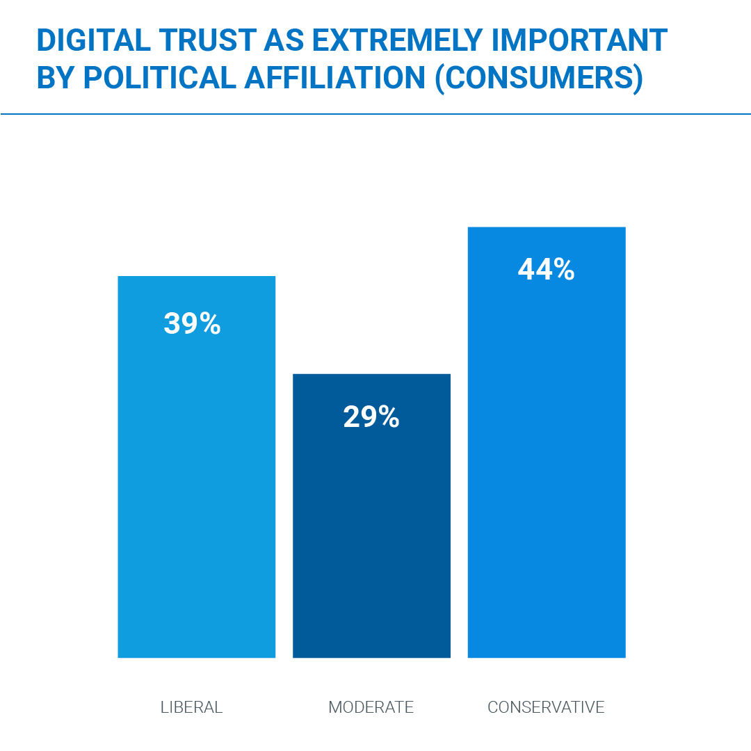Finally, something that liberals and conservatives can agree on! Both are more likely to say digital trust is extremely important.
