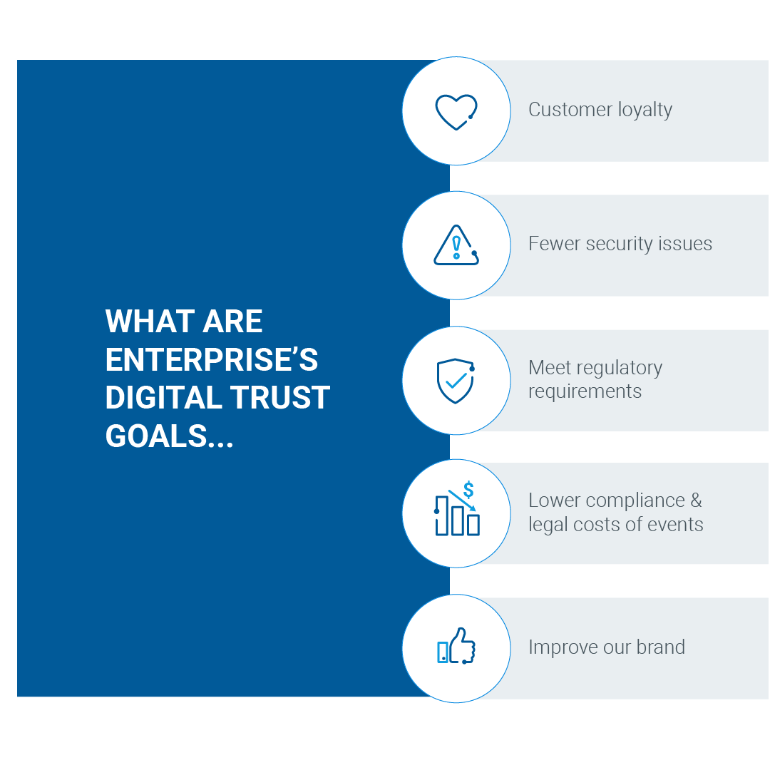 Recognize that digital trust awareness is rising among your users, including consumers, and that your business success and reputation are tied directly to your ability to ensure digital trust at a high level. |