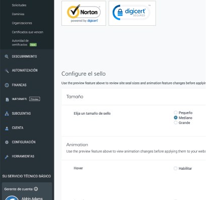Para aumentar la confianza y las transacciones en su sitio web, exhiba los sellos de seguridad DigiCert Secured, Norton, GeoTrust o Thawte powered by DigiCert. Muéstreles a los clientes que su identidad y su información personal están protegidas con la autoridad de certificación más confiable de Internet.