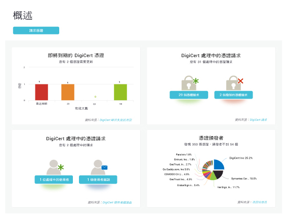 CertCentral®l® 管理平台可在憑證有效期限內,自動執行每個管理步驟,讓您輕鬆保護客戶並維護您的品牌信譽。
